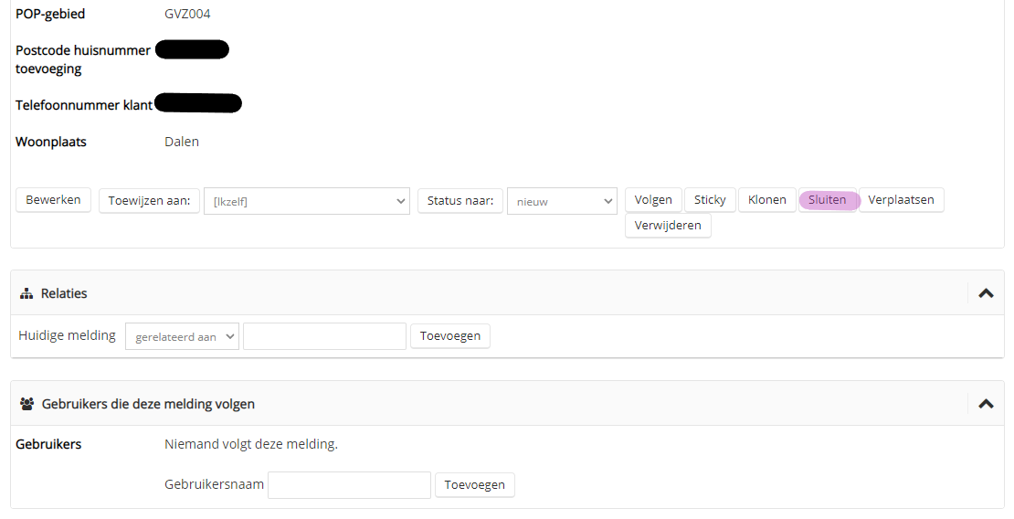 Open de melding. Scroll naar beneden tot onder de informatie van de melding (nog boven de reacties), zie onderstaande afbeelding.